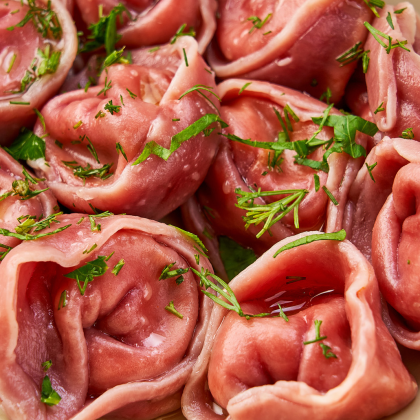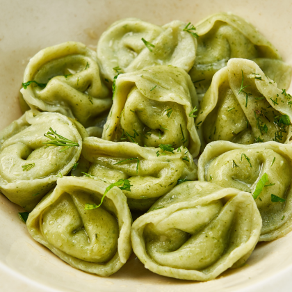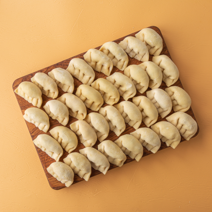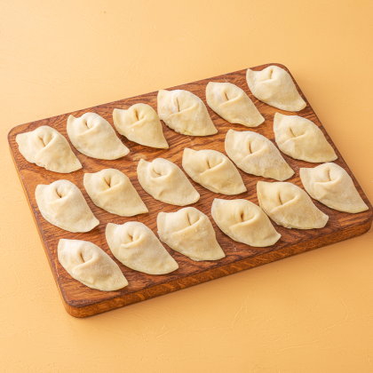Начинка (мраморная говядина, лук, чеснок, специи), тесто (мука пшеничная, масло растительное, вода)